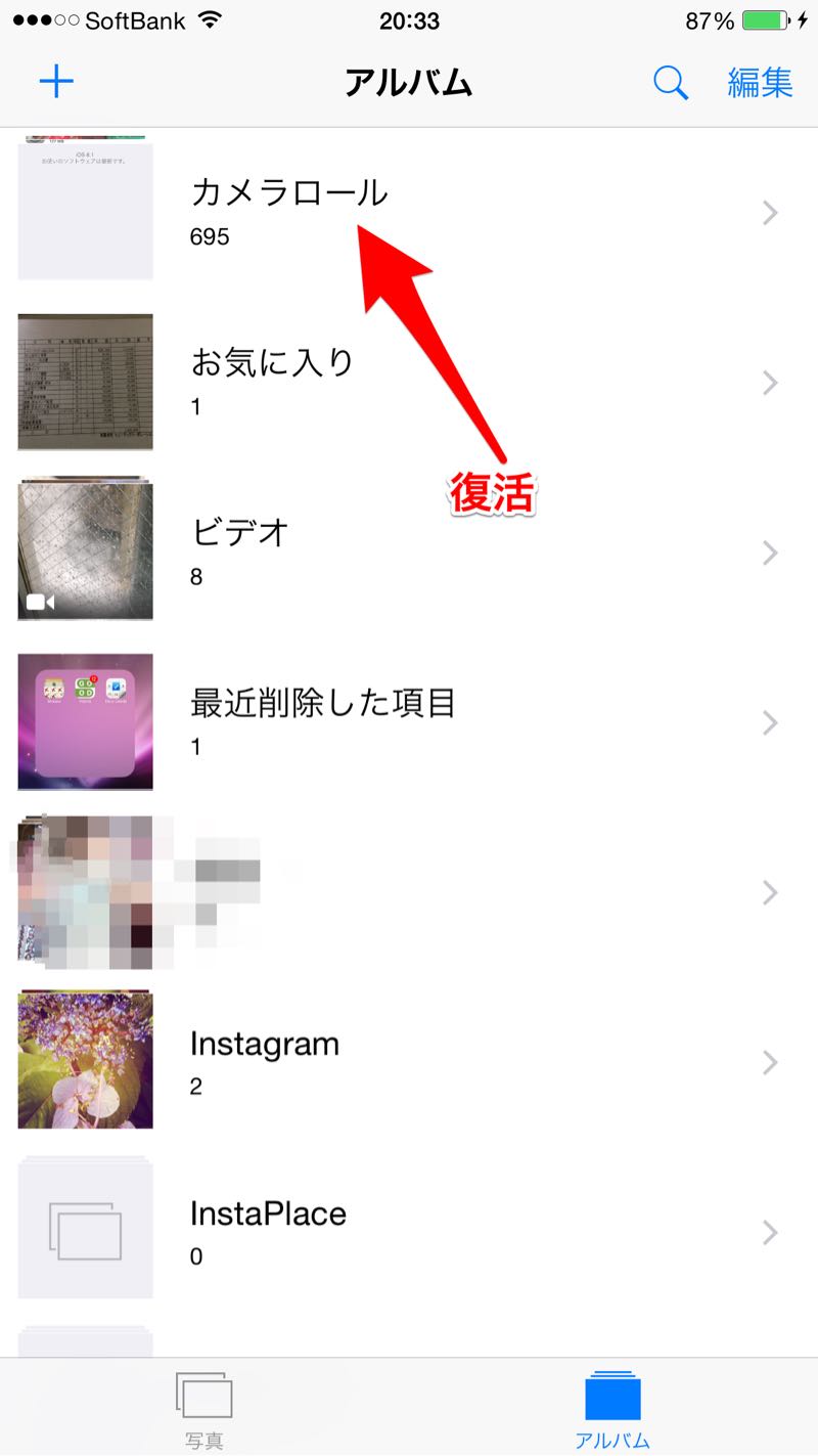 カメラロール復活 ios8.1アップデート完了